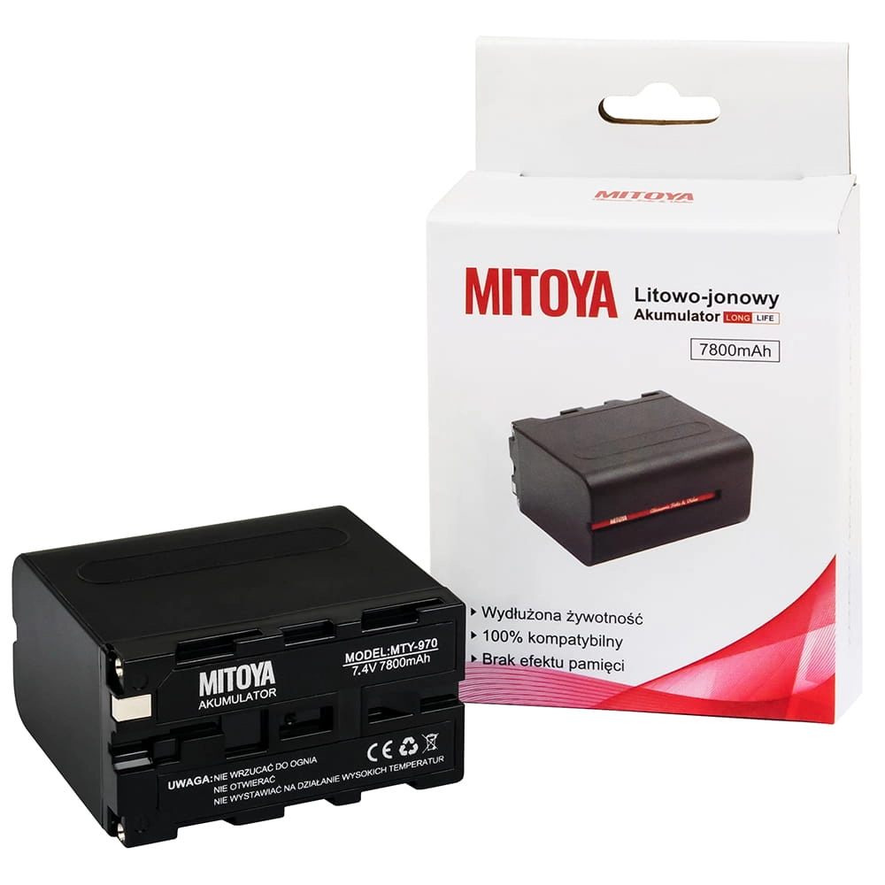 Akumulator NP-F970 MITOYA LONG LIFE dedykowany jest do kamer Sony, monitorów podglądowych Feelworld, transmiterów obrazu oraz panelowych lamp LED różnych marek, takich jak Yongnuo, Ulanzi, MITOYA i innych. Dzięki wydajnym ogniwom litowo-jonowym (Li-Ion) zapewnia pojemność 7800 mAh. Bez efektu pamięci może być ładowany w dowolnym momencie, co nie wpływa negatywnie na jego wydajność. Wysokie standardy produkcji gwarantują bezpieczeństwo zarówno akumulatora, jak i zasilanych urządzeń.