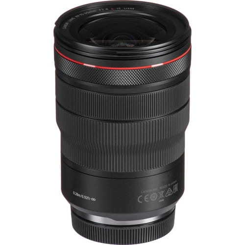 - Szerokokątny obiektyw zmiennoogniskowy został zaprojektowany do użytku z pełnoklatkowymi aparatami bezlusterkowymi Canon z mocowaniem RF.