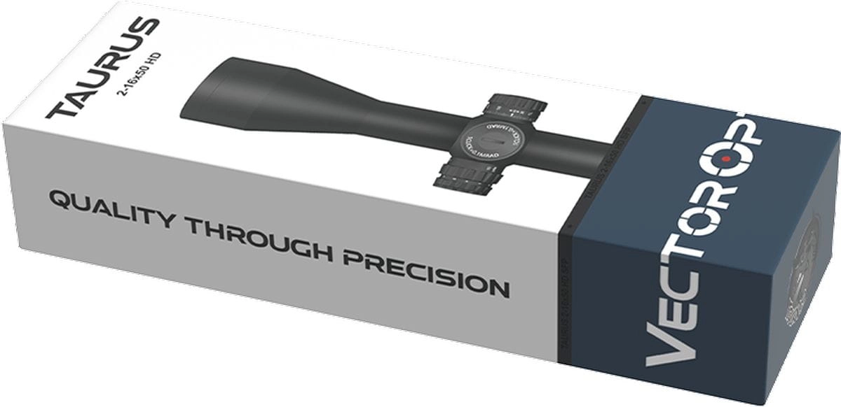 Luneta celownicza Vector Optics Taurus 2-16x50 HD SFP z 8-krotnym zoomem i tubusem 30 mm, idealna do strzelania na średnich i długich dystansach, wykorzystuje technologię soczewek lantanowych o bardzo niskiej dyspersji, co zapewnia wyjątkową jakość i klarowność obrazu.