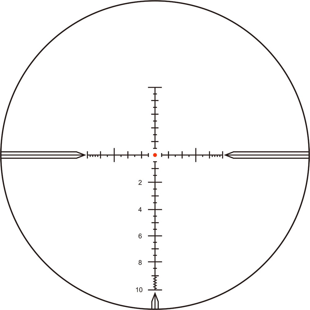 - Krzyż balistyczny MPX1 na pierwszym planie (FFP), umożliwiający proporcjonalną zmianę siatki względem powiększenia.