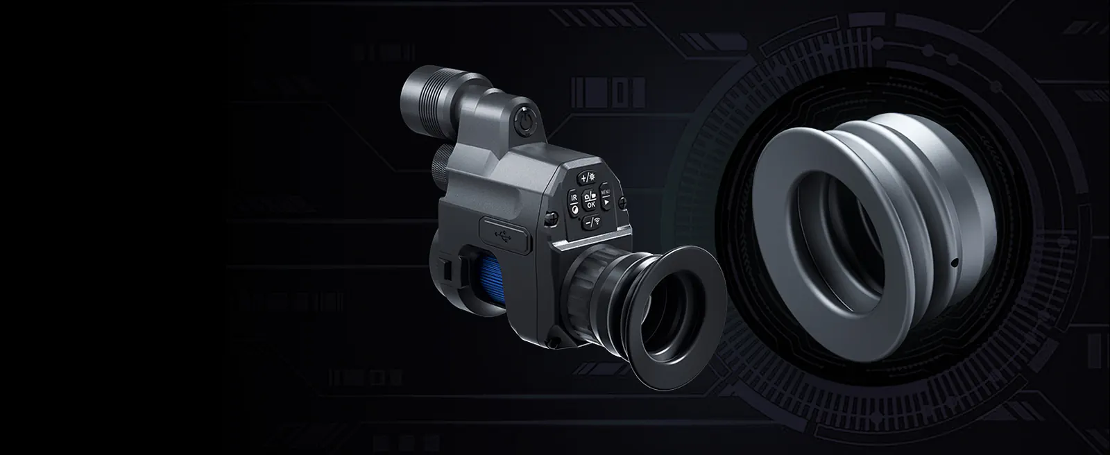 Wbudowany emiter podczerwieni 850 nm oferuje zasięg około 150 m i ma 3 poziomy regulacji jasności. Pozwala to dopasować doświetlenie do odległości i warunków w terenie, aby poprawić czytelność obrazu. W praktyce łatwiej utrzymasz kontrast na celu w ciemności.