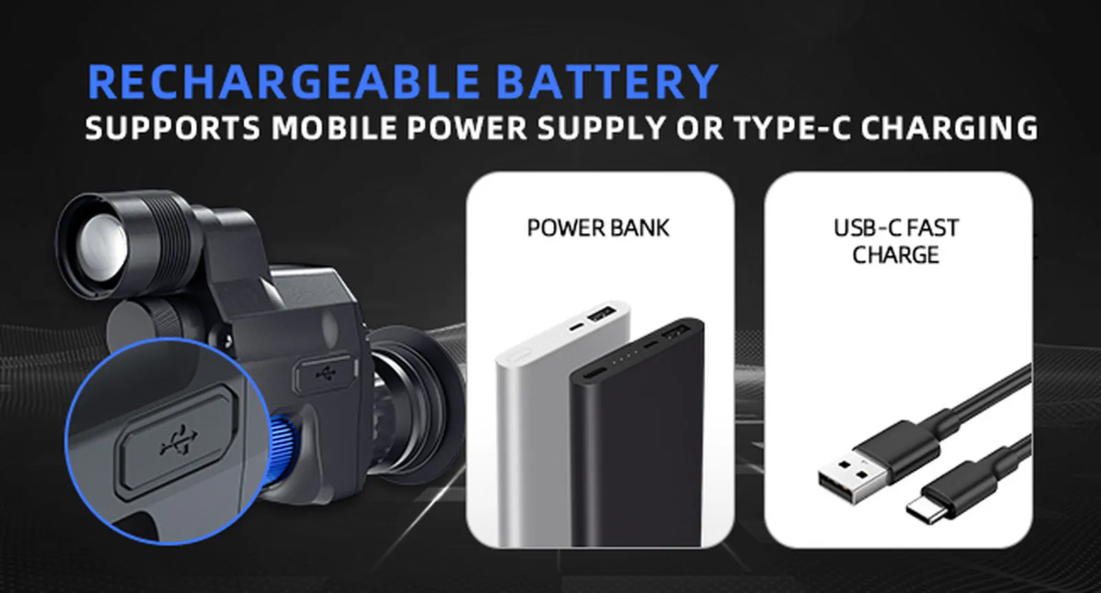Urządzenie zasilasz akumulatorem 18650, a ładowanie odbywa się przez USB-C, także z powerbanku. Deklarowany czas pracy wynosi około 8 godzin, co ułatwia dłuższe zasiadki. To praktyczne, gdy chcesz ograniczyć liczbę przerw na zmianę zasilania.