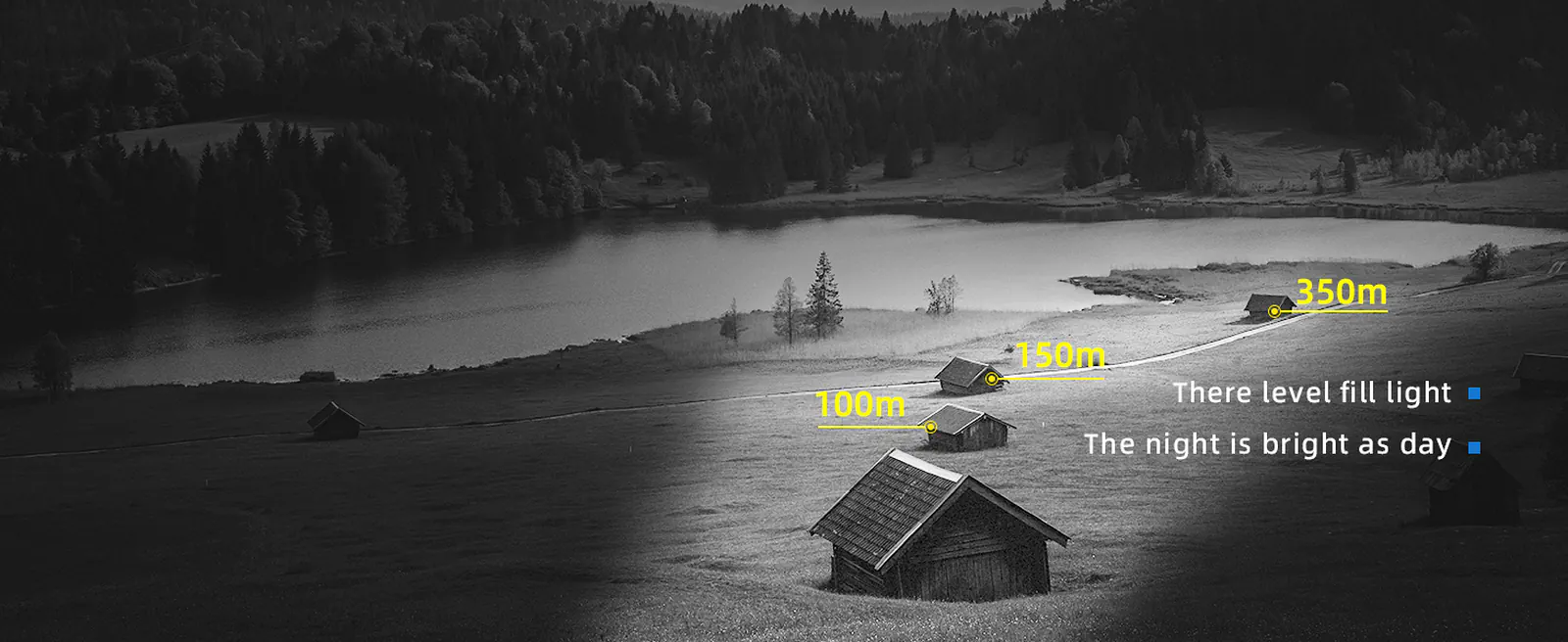 - Doświetlasz scenę w nocy z wbudowanym emiterem IR 850 nm o zasięgu około 150 m i 3-stopniową regulacją.