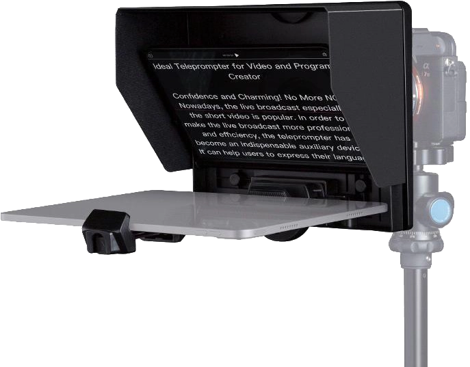 Teleprompter jest również wyposażony w osłonę przeciwsłoneczną, która skutecznie zapobiega zakłóceniom świetlnym i sprawia, że wyświetlane treści są wyraźniejsze.