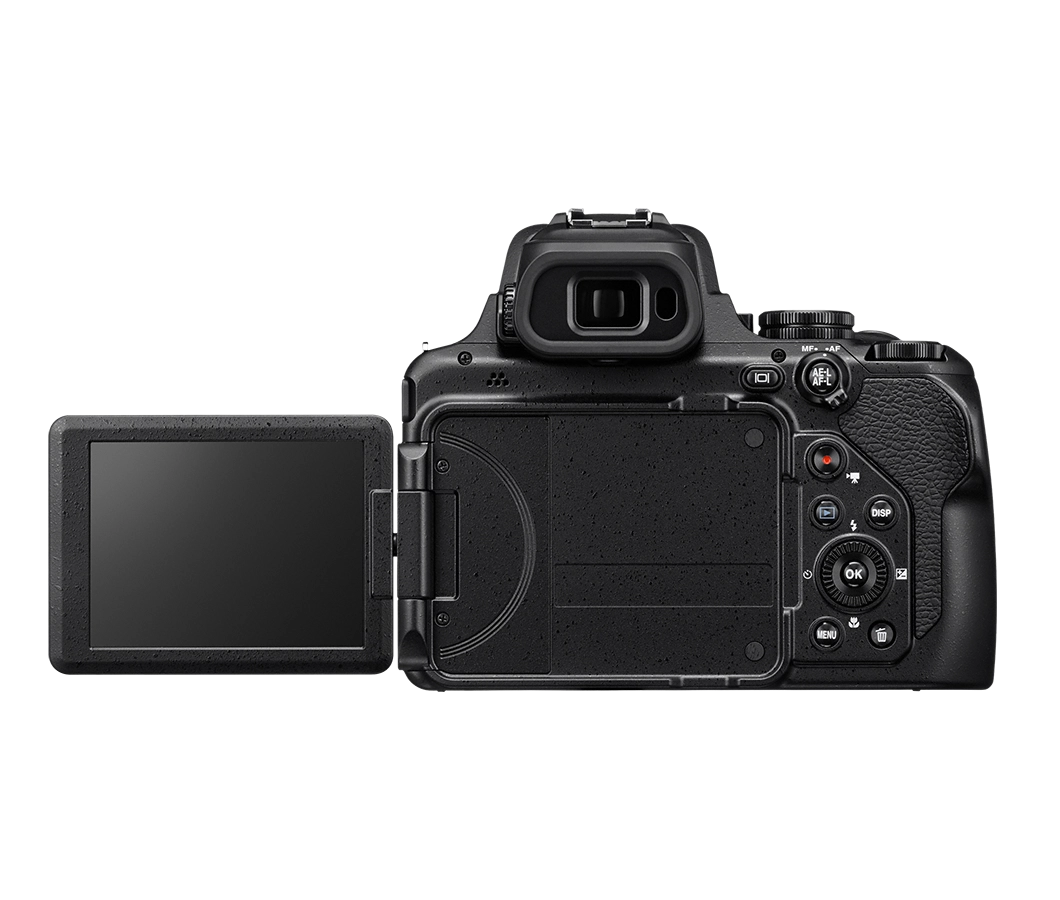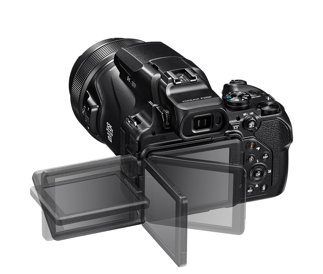 Aparat P1100 ma jasny, odchylany wyświetlacz LCD o przekątnej 3,2 cala, dzięki któremu komponowanie i przeglądanie zdjęć i filmów staje się dziecinnie proste. Dostępny jest również elektroniczny wizjer OLED o przekątnej 0,39 cala i rozdzielczości 2,36 miliona punktów, umożliwiający bardziej tradycyjny styl fotografowania.