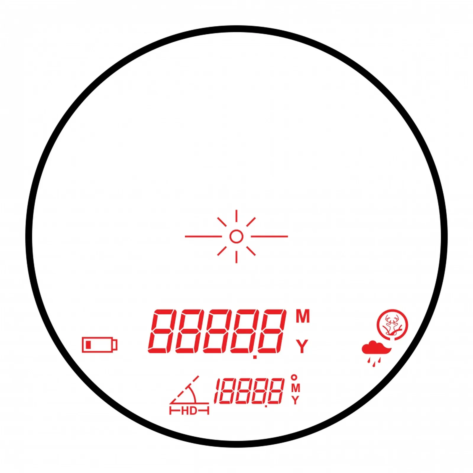 Urządzenie oferuje tryb standardowy, tryb deszczu, tryb polowania oraz tryb horyzontalny. Pozwala to lepiej dopasować pomiar do warunków terenowych i rodzaju obserwowanego celu.