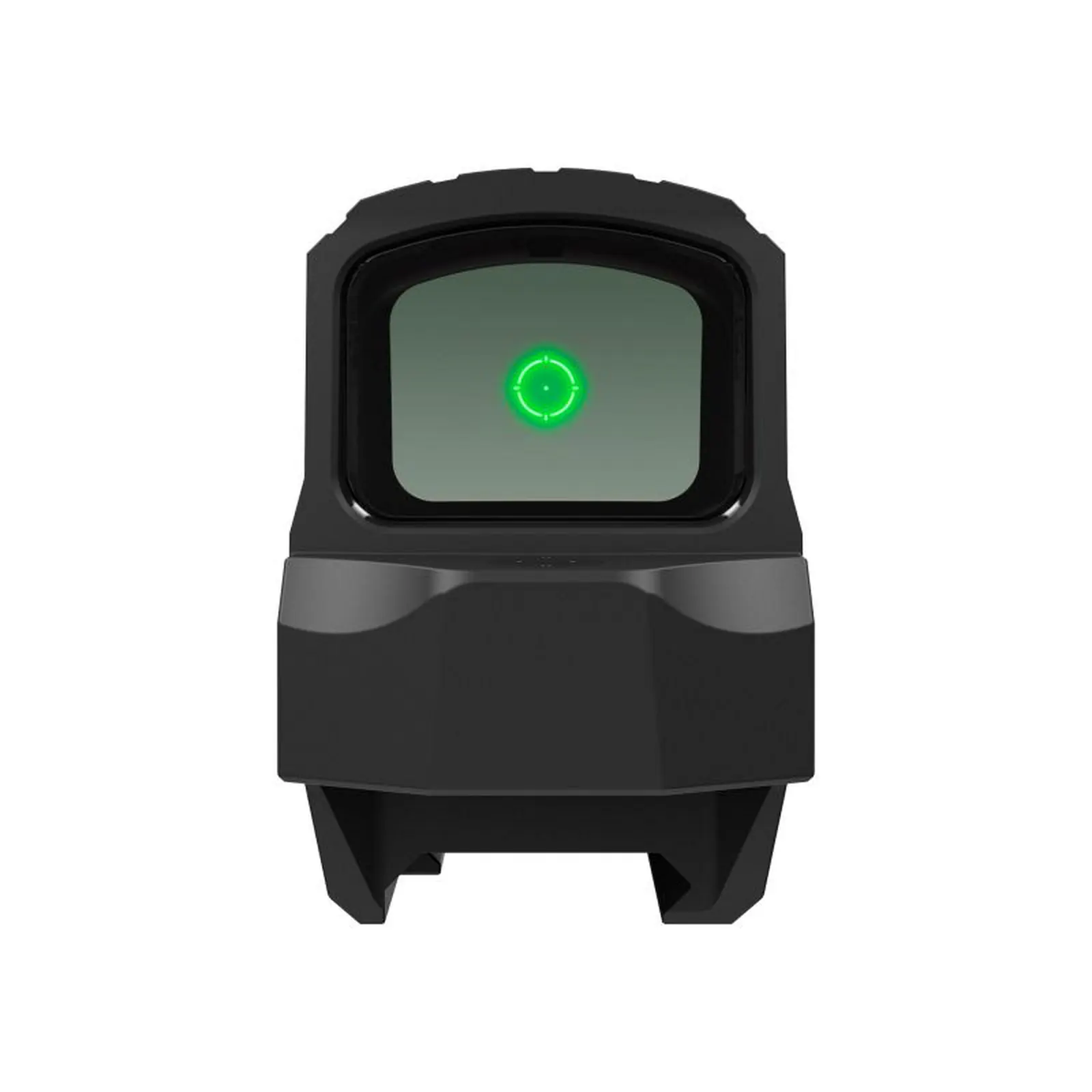 Masz przełączany system siatek MRS: punkt 2 MOA, okrąg 65 MOA albo układ łączony (okrąg + punkt). Przełączanie pozwala dopasować obraz do stylu strzelania i dystansu. Siatka ma kolor zielony.