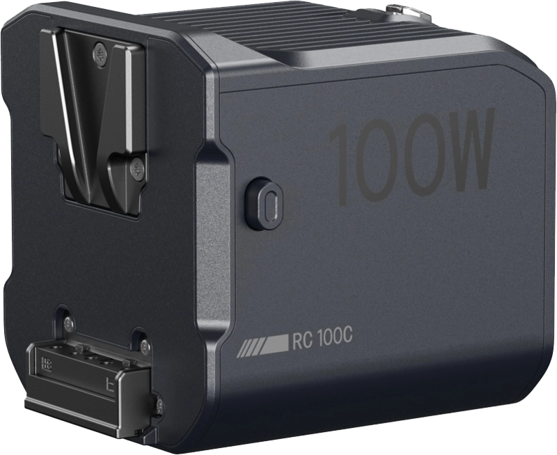 Na planie filmowym liczy się niezawodność, dlatego producent przewidział kilka sposobów zasilania. W trybie mobilnym podłączysz baterie V-mount albo popularne akumulatory NP-F970 (z odpowiednim uchwytem/płytką). W terenie skorzystasz też z portu USB-C – zasilisz lampę z uchwytu power, powerbanku PD czy przewodu ładującego o odpowiedniej mocy. W studio pracuj komfortowo z zasilaczem AC→DC (130 W dedykowany do RC 100), który zapewnia stabilny zapas energii podczas dłuższych sesji. Takie podejście daje Ci swobodę konfigurowania zestawu pod konkretne zlecenie – od szybkich solowych nagrań po wielopunktowe oświetlenie.