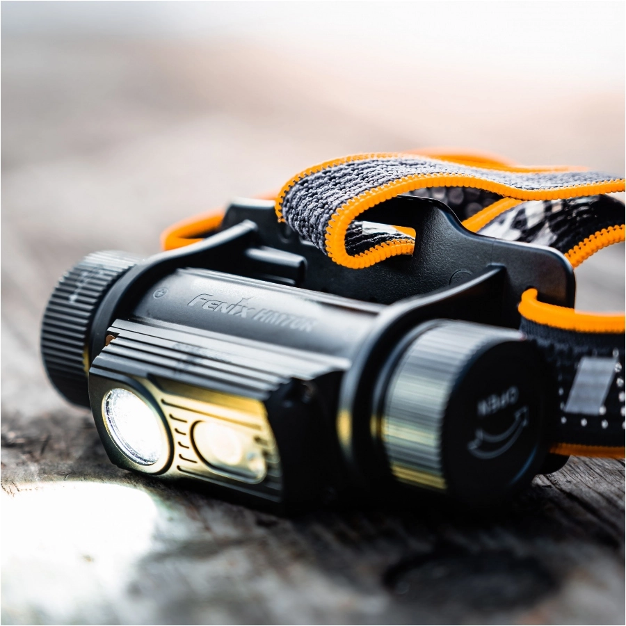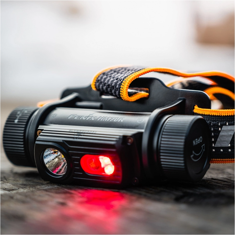 Oprócz diody dalekiego zasięgu, zastosowano również mniejszą diodę XP-G2 HE o maksymalnym strumieniu świetlnym 400 lumenów. Jego neutralne światło jest równomiernie i skutecznie rozpraszane przez kolimacyjną soczewkę o strukturze plastra miodu. Światło o neutralnej barwie wiernie odwzorowuje kolory otoczenia i nie męczy wzroku, dzięki czemu znajduje szerokie zastosowanie w pracach przemysłowych, warsztatowych i elektrycznych, gdzie prawidłowa ocena koloru kabli, bezpieczników itp. może być niezwykle istotna. Aby zwiększyć uniwersalność czołówki, Fenix HM70R posiada dodatkowe czerwone światło generowane przez 2 diody Everlight 2835 LED. Czerwone światło może być używane do czytania map nocnych, sygnalizacji awaryjnej i wizualnej regulacji w całkowitej ciemności. Obrotowa głowica latarki umożliwia pionową regulację kąta świecenia w zakresie 180°, dzięki czemu możemy w łatwy sposób sterować wiązką światła w zależności od potrzeb.