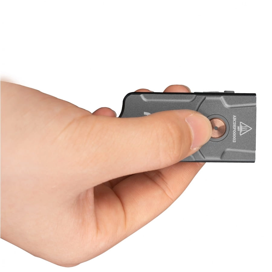 Jego obsługa jest prosta, z jednym anodowanym metalowym przyciskiem, który steruje włączaniem/wyłączaniem i zmianą trybów. Aby zapobiec przypadkowemu uruchomieniu, przycisk znajduje się poniżej linii korpusu i posiada blokadę (aktywowaną przez dwukrotne kliknięcie). Latarka jest zasilana przez wbudowany akumulator Li-Po o pojemności 400mAh, który można ładować przez port USB-C, dzięki czemu wygodnie jest ładować z zewnętrznego powerbanka lub dowolnego innego źródła USB.