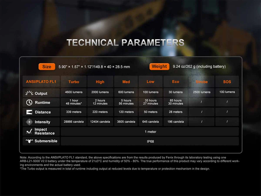 Specyfikacja techniczna Fenix C7 PRO – latarka przemysłowa LED 4600 lm (czarna)
