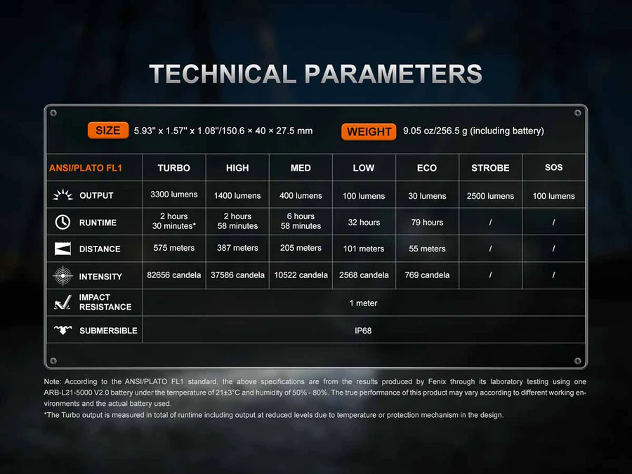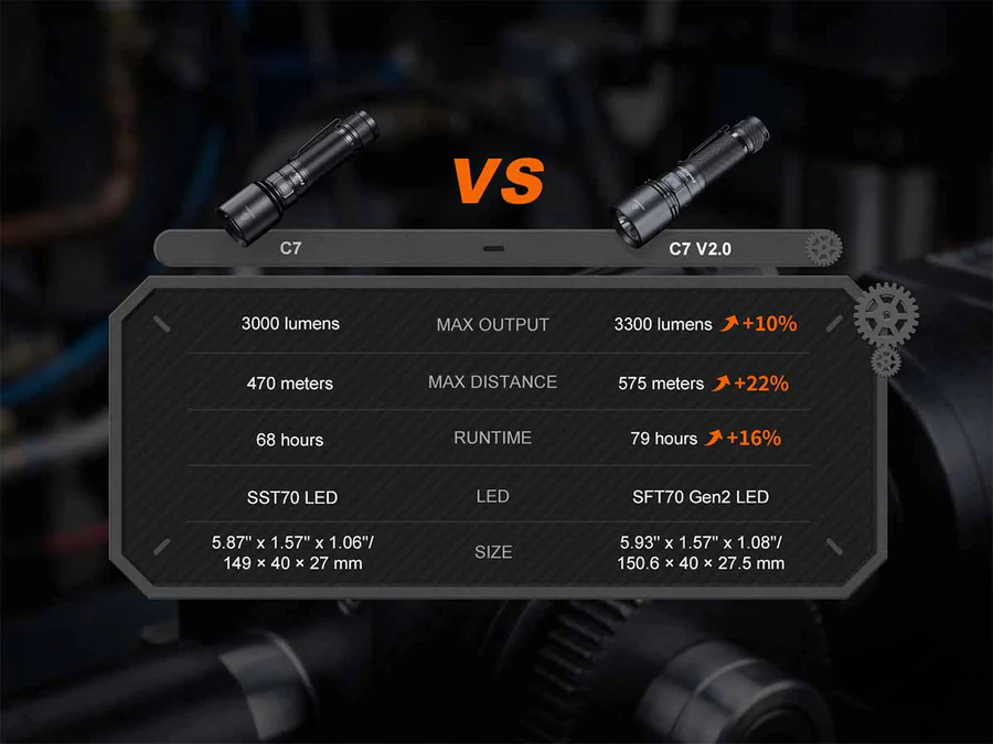 Specyfikacja techniczna Fenix C7 V2.0 – latarka przemysłowa LED o zasięgu 575 m (czarna)
