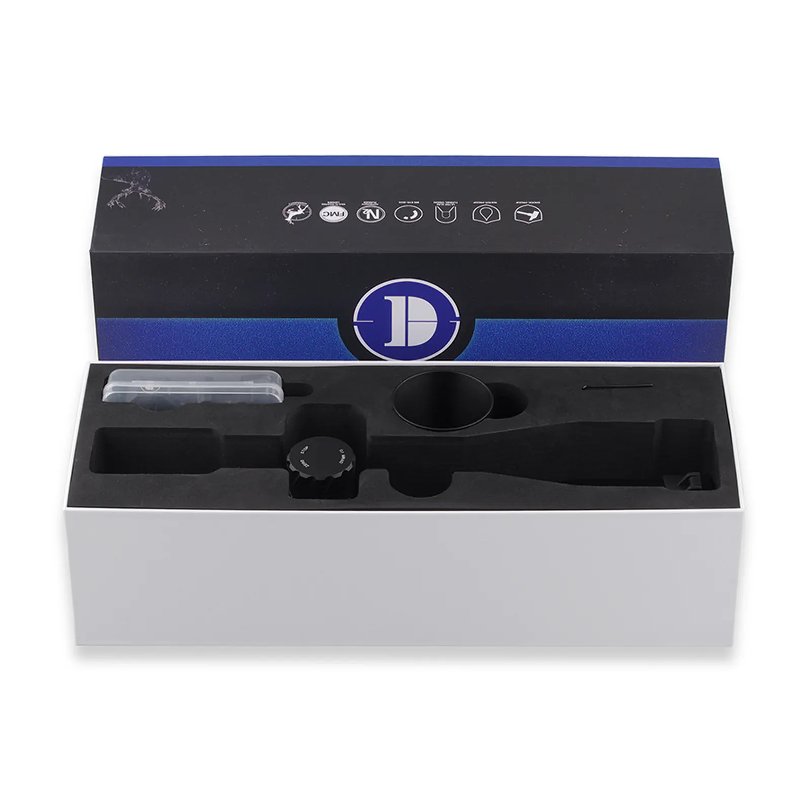 - Zakres regulacji elewacji: 33 mrad (330 cm / 100 m)