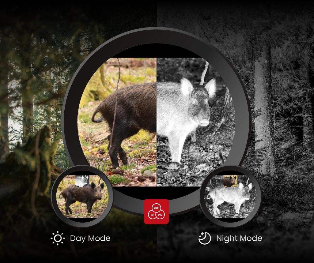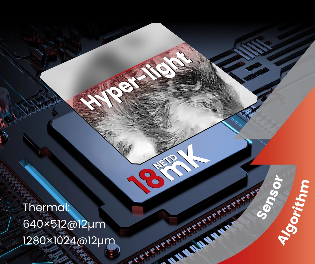 Algorytm Hyper-Light, wykorzystujący mechanizmy sztucznej inteligencji, na bieżąco poprawia obraz z obu sensorów. Redukuje szum, podbija kontrast i wyciąga detale z tła, dzięki czemu łatwiej odróżniasz zwierzynę od otoczenia – niezależnie, czy patrzysz w trybie termowizyjnym czy cyfrowym. Wspólne przetwarzanie informacji z obu kanałów sprawia, że zachowujesz wysoki poziom szczegółów, a jednocześnie dobrze widzisz różnice temperatur. Dla Ciebie oznacza to mniej zgadywania i szybsze, pewniejsze rozpoznanie celu.