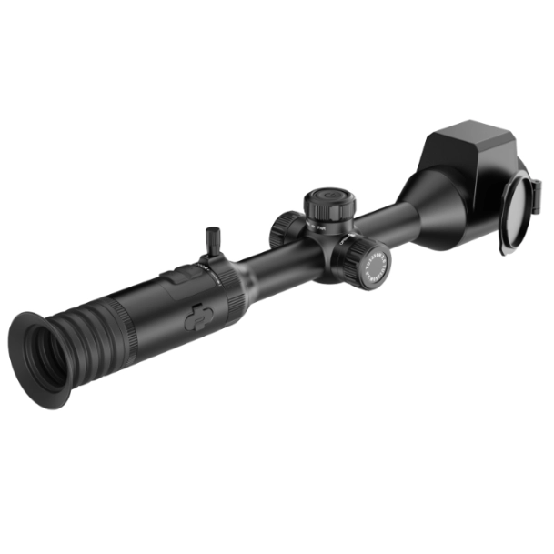 Ergonomiczny układ przycisków i pokręteł pozwala obsługiwać lunetę w rękawicach – bez szukania drobnych klawiszy po ciemku. Ręczna regulacja ostrości na obiektywie 50 mm F1.0 (kanał termiczny) oraz 35 mm F4.0 (kanał cyfrowy) daje Ci pełną kontrolę nad ostrością obrazu. Przy powiększeniu optycznym 3,7× i możliwości płynnego zwiększania aż do 29,6× precyzyjnie dopasowujesz przybliżenie do dystansu strzału. Nie potrzebujesz dodatkowego powiększalnika ani drugiej optyki – całe spektrum pracy załatwiasz jedną lunetą.
