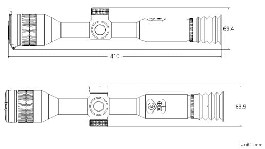 - przypominającym standardową lunetę, co zapewnia wygodę obsługi i klasyczny wygląd, nie przypominający typowych termowizorów obserwacyjnych.