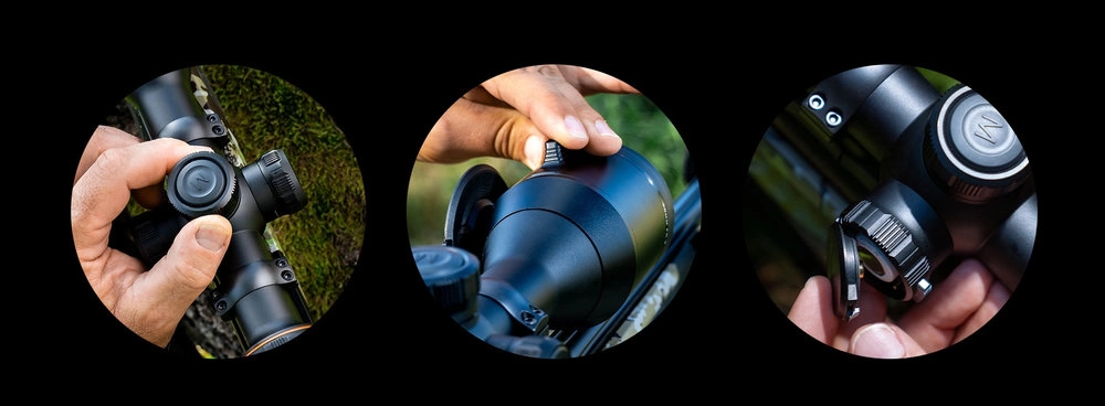 Regulator ostrości pod dłonią, osłona portu ładowania i wbudowana galeria do podglądu nagrań skracają czas manipulacji. Funkcje łowieckie – kalkulacje balistyczne, nagrywanie aktywowane odrzutem i auto-wygaszanie – wspierają skupienie na celu zamiast na menu.