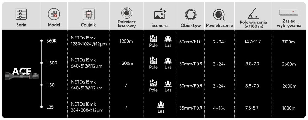 Specyfikacja techniczna lunety termowizyjnej Nocpix Ace S60R