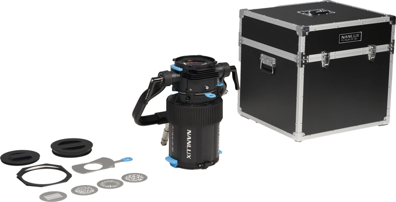 NL Mount Projection Attachment montujesz bezpośrednio do lamp Nanlux Evoke: 900C, 1200, 1200B i 2400B. Stabilne mocowanie i wyważenie zestawu ułatwiają pracę na statywie i wózku oświetleniowym, a całość jest zaprojektowana pod wysokie moce – możesz bez obaw korzystać także z najmocniejszych jednostek.