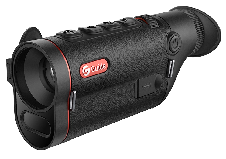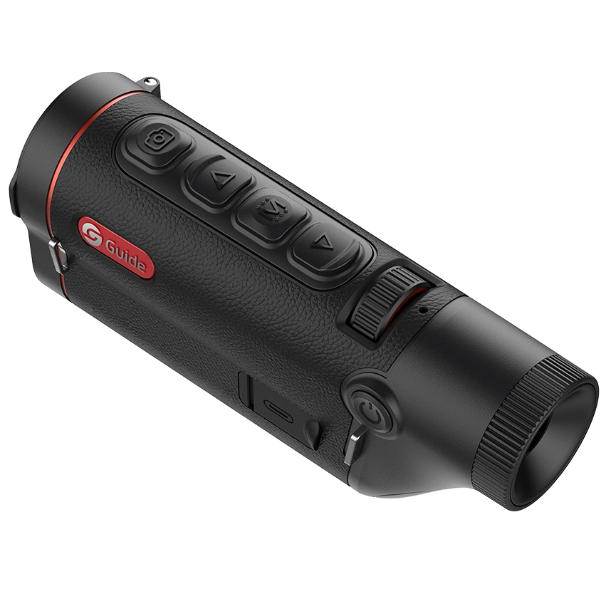 Monokular termowizyjny z dalmierzem Guide TD633L został zaprojektowany tak, aby wygodnie obsługiwać go jedną ręką – zarówno prawą, jak i lewą. Symetryczna obudowa i ergonomicznie rozmieszczone przyciski ułatwiają zmianę powiększenia, trybów pracy czy wyzwalanie dalmierza bez odrywania wzroku od okularu. Miniaturowa rolka do regulacji ostrości pozwala szybko dopasować ostrość do dystansu, co docenisz przy obserwacji przemieszczającej się zwierzyny. Dzięki temu w terenie skupiasz się na tym, co dzieje się w łowisku, a nie na szukaniu przycisków.