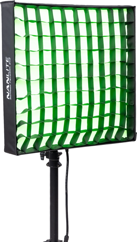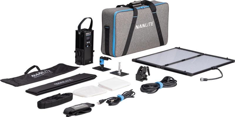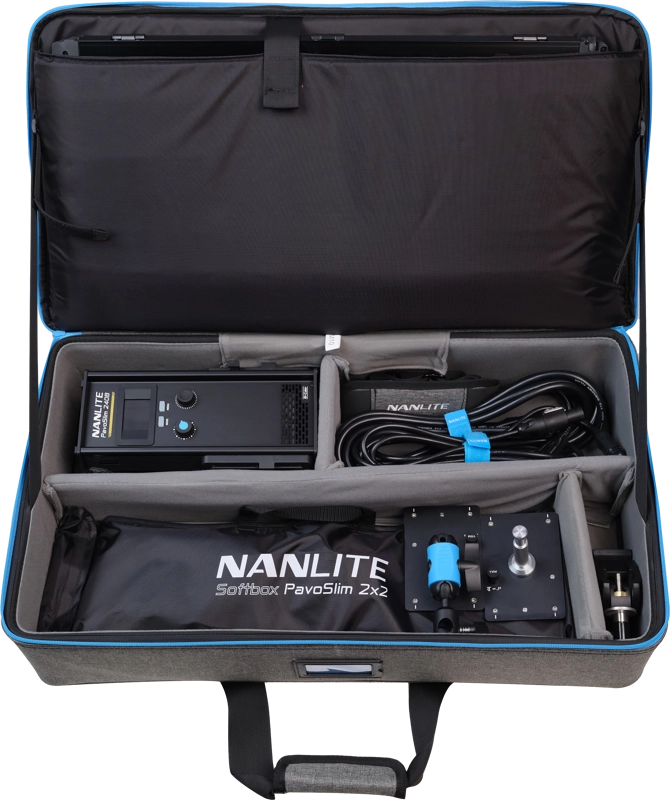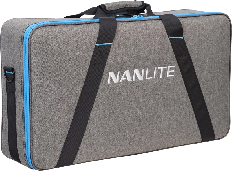 Panel dostarczany jest z dedykowanym składanym softboxem, który zapewnia miękkie, naturalne światło, oraz z wytrzymałą torbą transportową z przegrodami ułatwiającymi organizację. Całość została zaprojektowana z myślą o mobilności, wygodzie i szybkim wdrożeniu na planie.