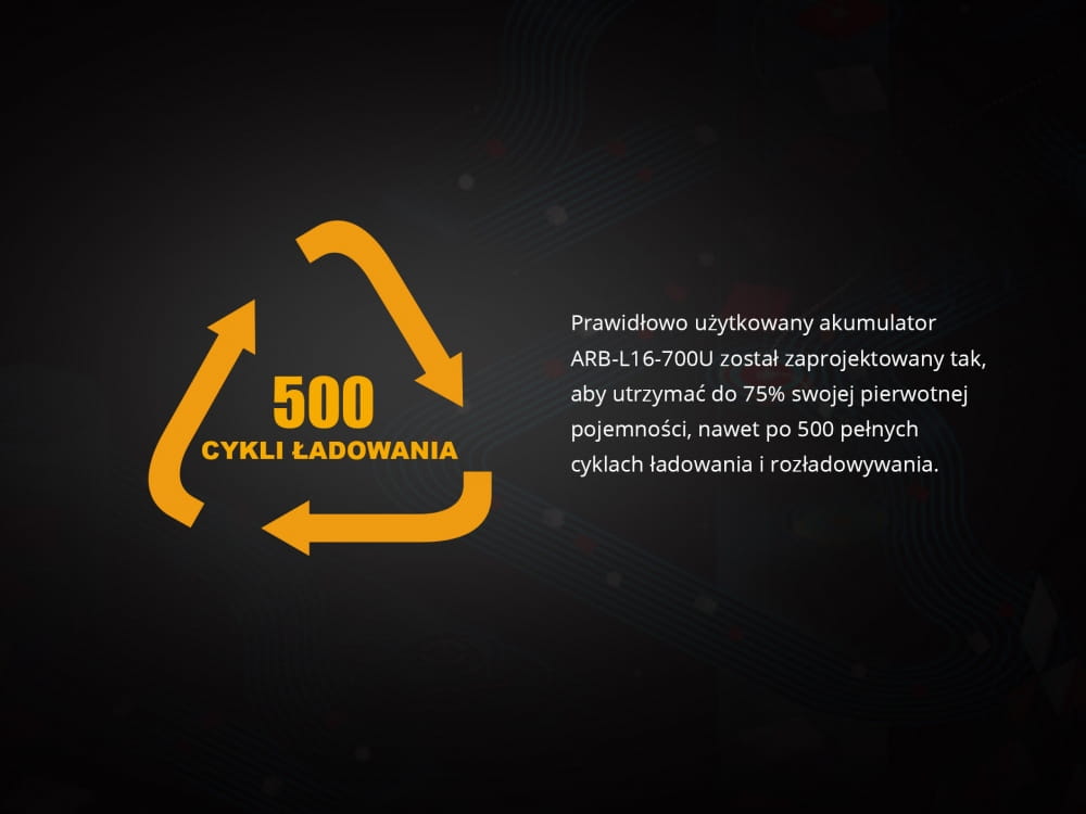 - Maksymalna ilość cykli ładowań do 500 cykli
