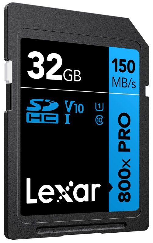 Karta pamięci Lexar 800x SDHC R150 32GB z serii BLUE przechwytuje wysokiej jakości obrazy i dłuższe filmy 1080p Full-HD, 3D i 4K wideo za pomocą aparatu kompaktowego, lustrzanki, kamery HD lub kamery 3D z prędkością odczytu do 150 MB/s. Karta posiada klasę prędkości Class 10, co w połączeniu z technologią UHS-I gwarantuje wysoką wydajność podczas codziennego nagrywania.