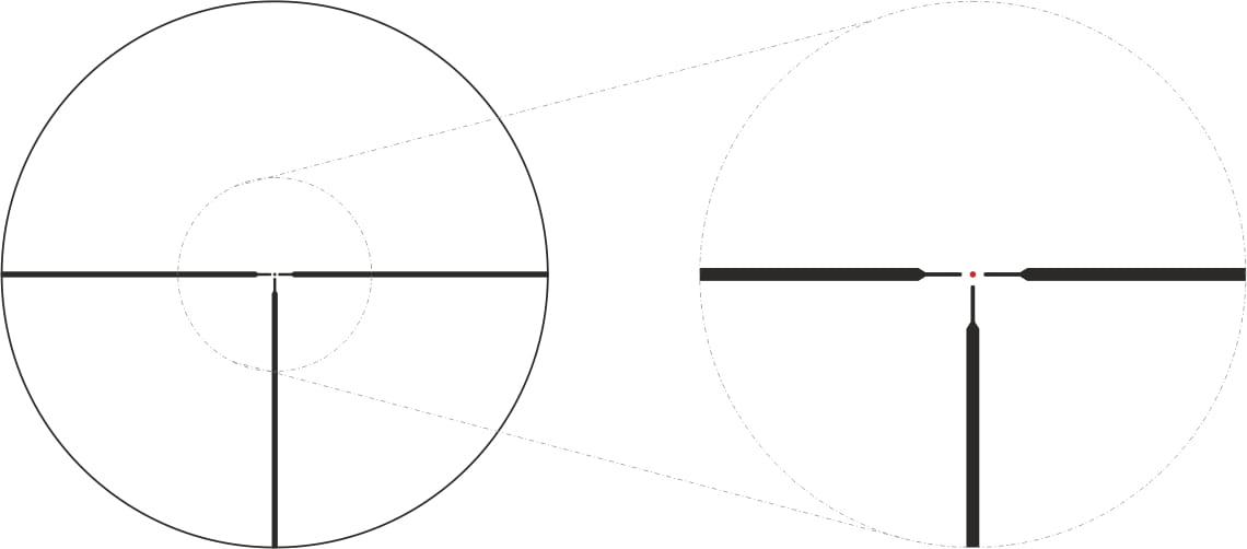 - Pojedynczy klik regulacji krzyża (MIL): 1/4 MOA MIL