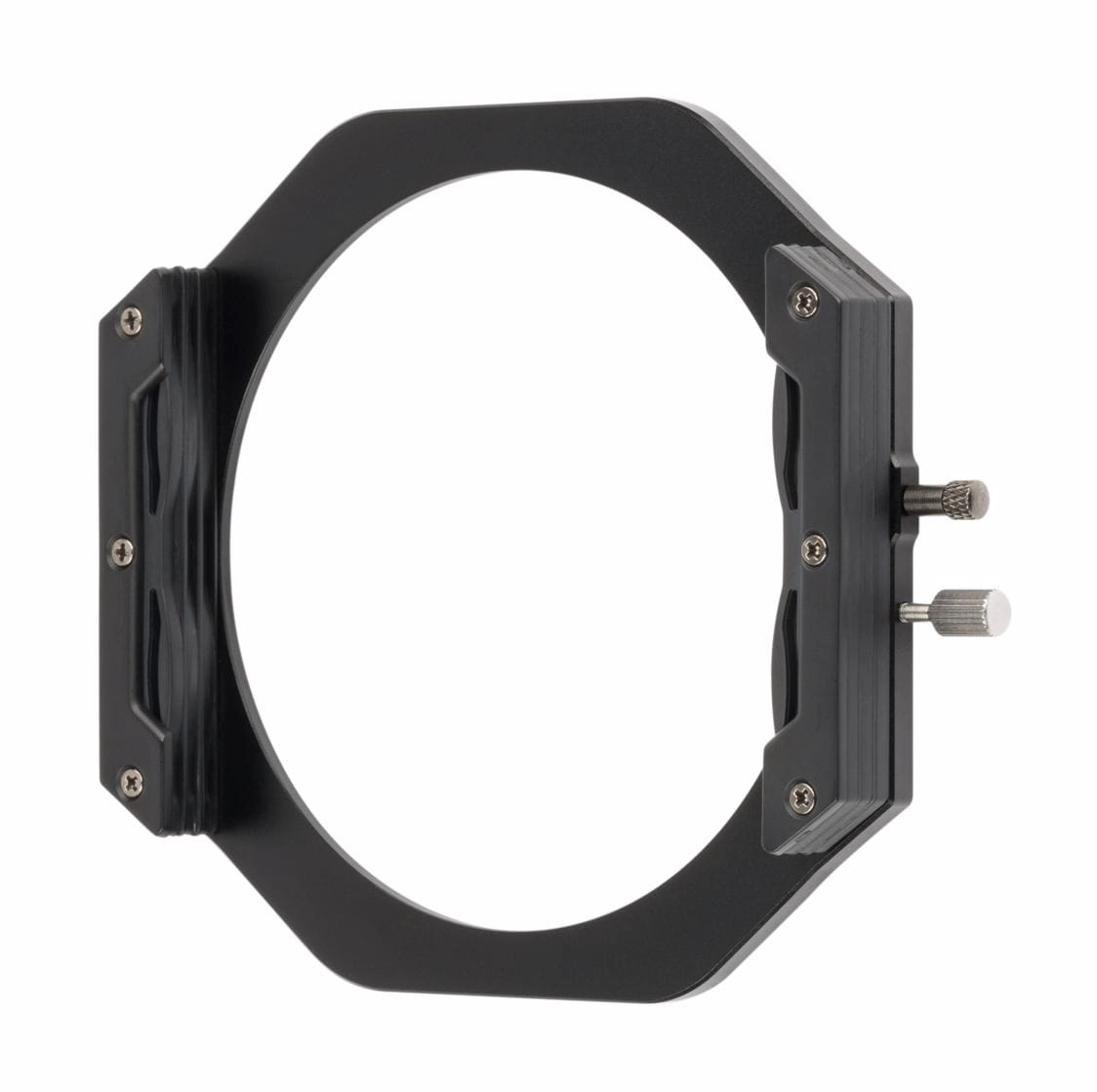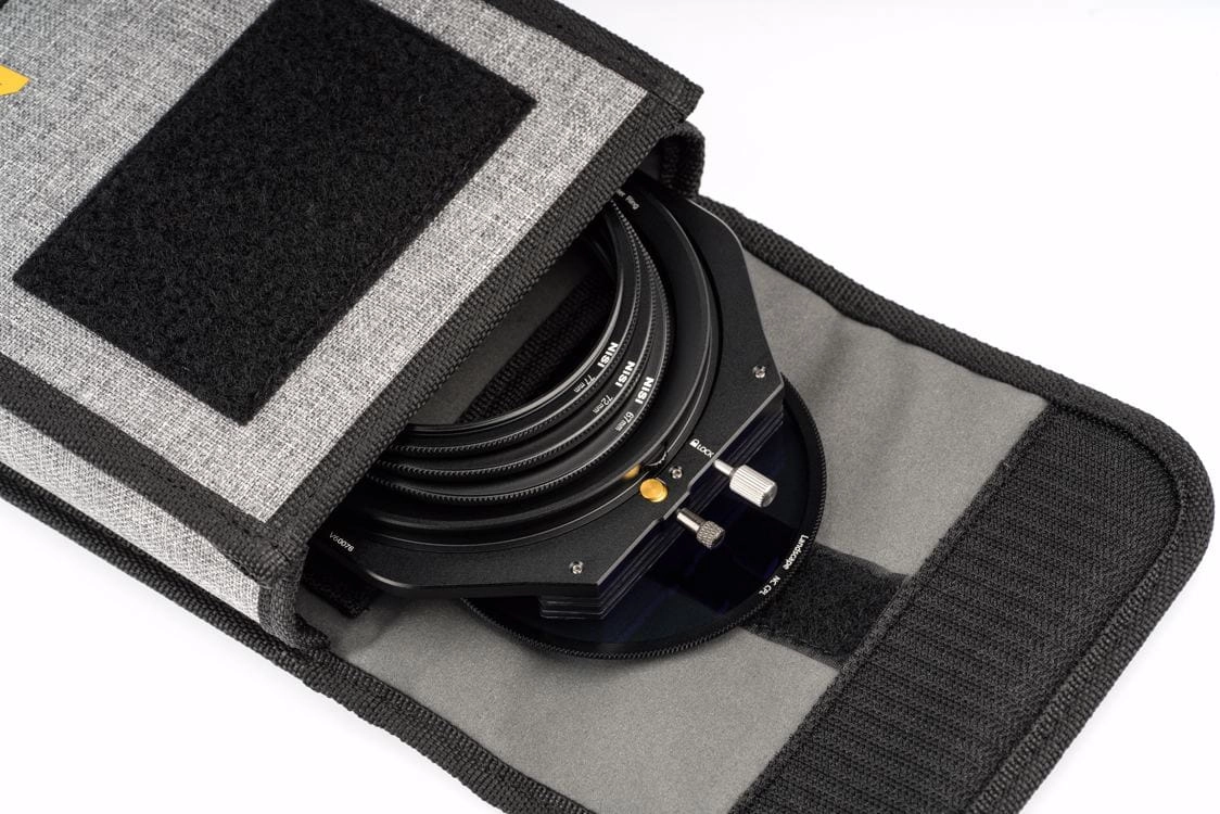 Uchwyt na trzy filtry kwadratowe 100 mm (o grubości 2 mm) i filtr polaryzacyjny NiSi, w dowolnej kombinacji. Można go obracać o 360 stopni i zablokować w żądanej pozycji, co jest zaletą przy użyciu stopniowanych filtrów ND. Z tyłu znajduje się również łatwo dostępne pokrętło regulacyjne, które umożliwia obracanie filtra polaryzacyjnego nawet wtedy, gdy uchwyt jest pełen innych filtrów.