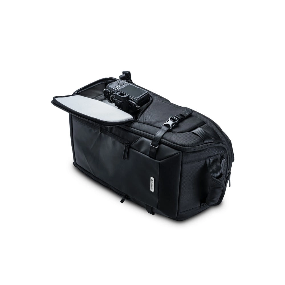 Veo Select 48BF to klasyczny plecak fotograficzny, który pomieści lustrzankę lub bezlusterkowca z obiektywem typu 70-200, 3-4 dodatkowymi obiektywami, lampą błyskową, ładowarką, tabletem lub 13" laptopem i drobnymi akcesoriami. Alternatywnie można w nim zmieścić sprzęt wideo, mały dron lub lunetę. Elastyczna konfiguracja wewnętrzna zapewnia dostęp z przodu i z boku lub z przodu i z góry, z opcją umieszczenia wewnątrz statywu. Klapa frontowa zapinana przy pomocy zamka błyskawicznego kryje komorę dedykowaną na sprzęt fotograficzny.