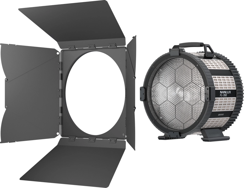 FL-35E to solidny, szklany Fresnel zaprojektowany do intensywnej eksploatacji. Waży ok. 10 kg i ma wymiary 430,38 × 490,15 × 330,3 mm, co ułatwia dobranie odpowiedniego statywu i ramienia. Sprytny mechanizm śrubowy pozwala regulować mocowanie silnika bez ryzyka jego całkowitego odłączenia. Dostarczana walizka na kółkach ułatwia transport między lokacjami i zabezpiecza optykę podczas podróży.