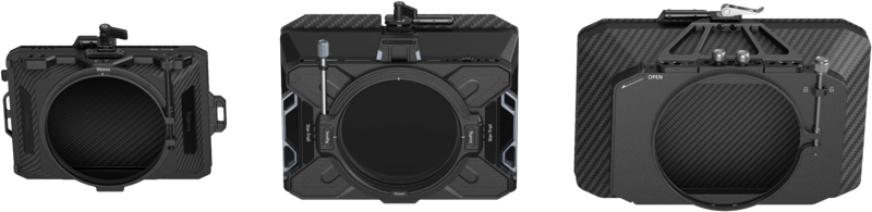 - Filtry wsuwane: 4×5,65" (grubość 4 mm); opcjonalnie ramka 4×4" SmallRig 3648 (montaż w szczelinie wewnętrznej).