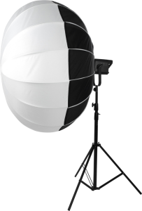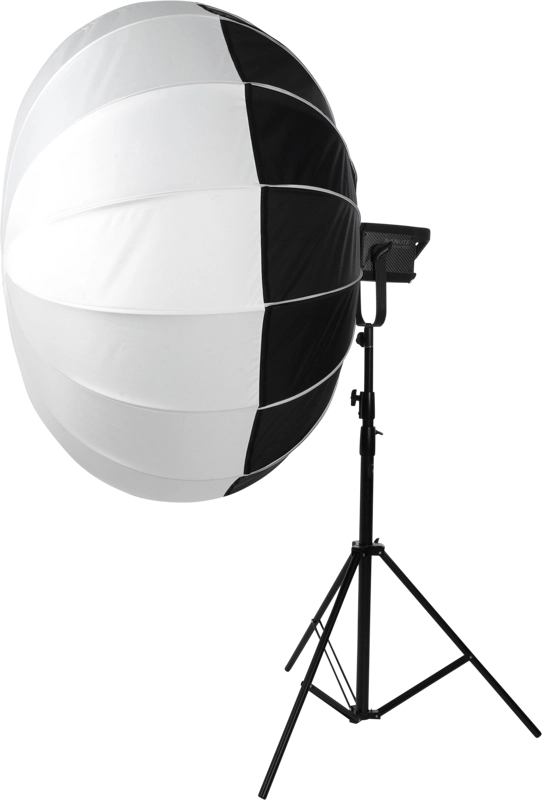 Softbox LT-120 w kształcie kuli został zaprojektowany do oświetlania małych, średnich i dużych przestrzeni, oferując przy tym naturalny i równomierny efekt świetlny. Dzięki 270-stopniowemu kątowi emisji światła doskonale podnosi poziom oświetlenia otoczenia, tworząc miękkie i przyjemne warunki idealne do portretów, fotografii reklamowej czy produkcji wideo.