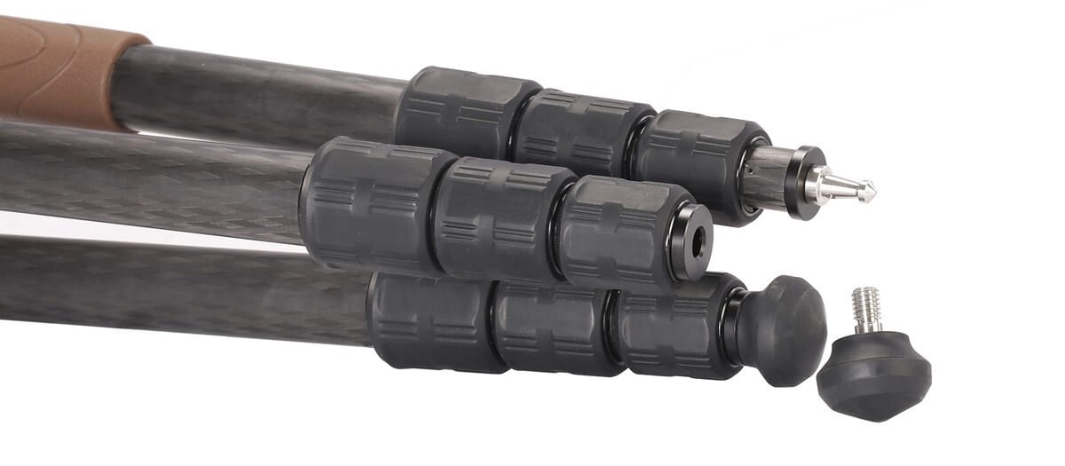 Leofoto LN-364C ma 10 warstw włókna węglowego Torayca, wraz z osprzętem aluminiowym obrabianym CNC 6061 i 7075.