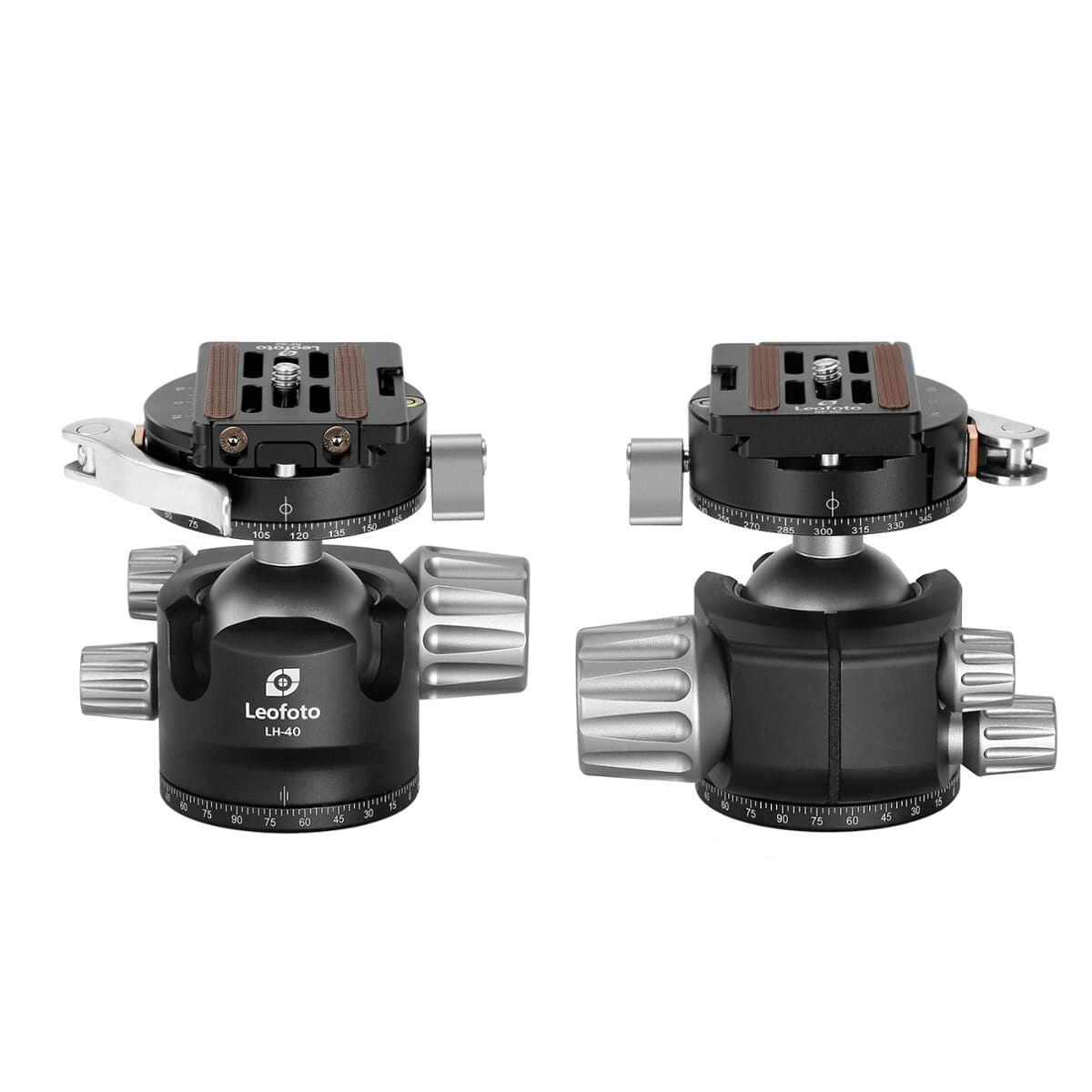 Dołączona głowica kulowa LH-40PCL jest zaawansowana, a jednocześnie bardzo przyjazna dla użytkownika. LH-40PCL to połączenie głowicy kulowej LH-40 z zaciskiem Leofoto PLC-60. Ten dodatkowy dodatek do głowicy kulowej umożliwia jej obracanie w poziomie o 360 ° w dwóch osiach. Za pomocą pokręteł regulacyjnych po bokach głowy kontrolujesz poziomą regulację i tarcie całej głowy. Dzięki podwójnym nacięciom pod kulką możesz przechylić kamerę o 90° w pionie w dwóch miejscach. Korzystając ze skali stopni na płycie statywu i wbudowanej poziomicy, LH-40PCL można bardzo precyzyjnie ustawić. Dzięki uniwersalnej płytce szybkiego wypinania NP-60 Arca-Swiss możesz szybko przymocować kamerę do głowicy kulowej. Długość płyty wynosi 60mm. Również z płytką Leofoto L-plate kamera może być zamontowana na tej głowicy.