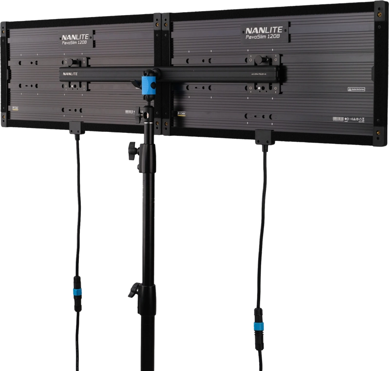 Statyw NANLITE PavoSlim 120B/C Dual-Panel Coupler Kit (AS-DPC-PS120-KIT) został zaprojektowany, aby połączyć dwa panele PavoSlim 120B lub 120C w jedno, większe źródło światła. Użytkownik może zamontować je w konfiguracji poziomej 2x2 lub pionowej 4x1, co daje ogromną elastyczność podczas pracy na planie zdjęciowym czy filmowym. Dzięki temu zestaw pozwala dopasować oświetlenie do różnych scenariuszy produkcyjnych.
