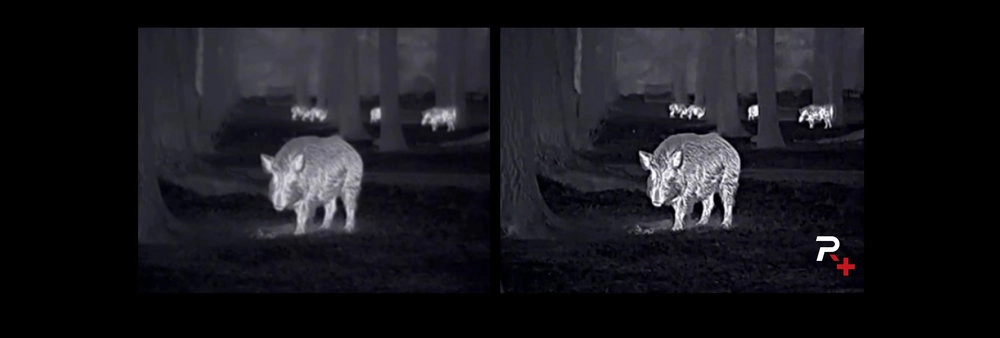 Przełączaj między 7 paletami, w tym wariantami czerwonym i zielonym, by ograniczyć zmęczenie oczu. Dostosujesz także jasność i kontrast, a tryby poprawy obrazu Reality+ plus tryb „Ultra-Clear” pomagają wyciągnąć szczegóły, gdy wilgoć lub dym obniżają kontrast sceny.
