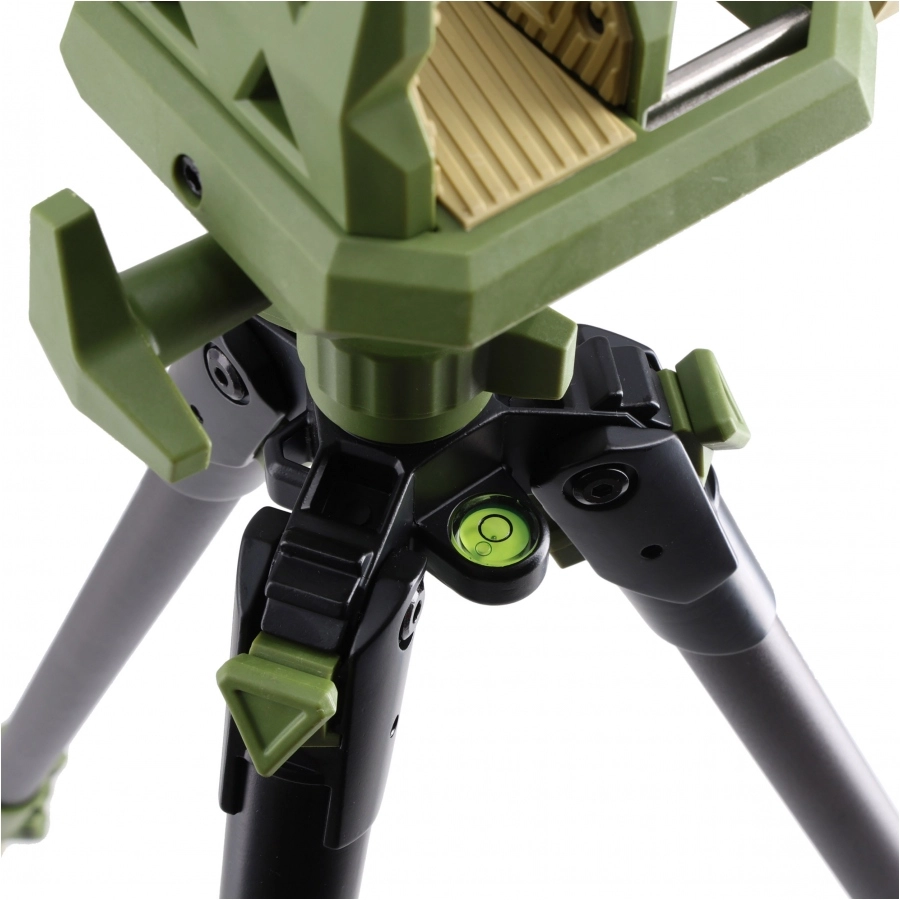 Nogi o trzech pozycjach pracy pozwalają szybko dopasować wysokość do terenu, a szeroki rozstaw trzyma broń pewnie podczas strzałów na dłuższych dystansach. Całość waży około 2,6 kg (5,75 lb), więc przenosisz statyw bez wysiłku w trakcie podchodu czy zmiany stanowiska.