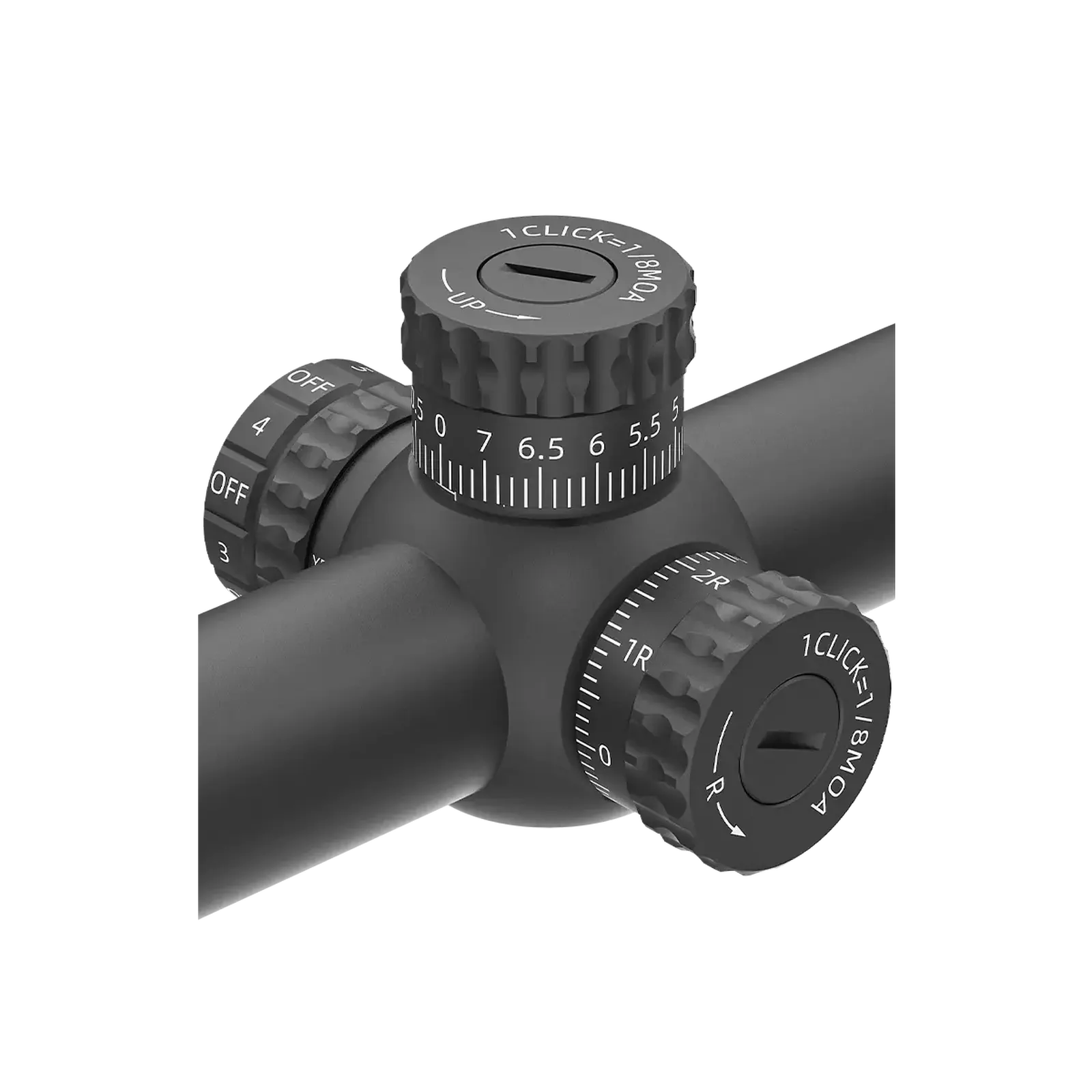 - Klik 1/8 MOA pozwala wprowadzać bardzo drobne korekty, gdy liczy się „centymetr na tarczy”.