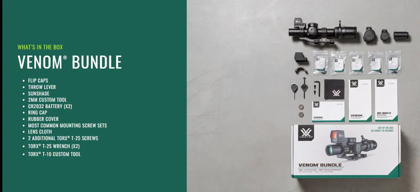 Jakie są najważniejsze zalety lunety Vortex Venom 1-6x24 w tym zestawie?