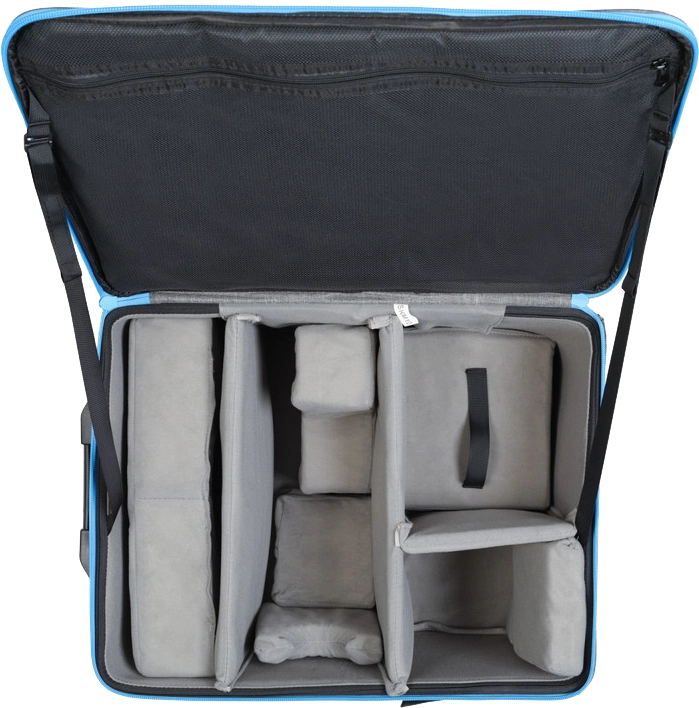 Walizka oferuje wydzielone miejsce na kluczowe elementy Twojego zestawu oświetleniowego. Bez trudu pomieści lampę, a także dodatkowe akcesoria, takie jak soczewka Fresnela FL-20G, kable, zaciski, reflektor czy jednostkę sterującą. Dzięki temu, wszystkie niezbędne komponenty masz zawsze pod ręką i w idealnym porządku, co znacznie przyspiesza pracę na planie. Koniec z szukaniem drobnych akcesoriów w nieuporządkowanej torbie.