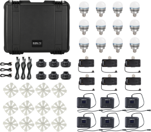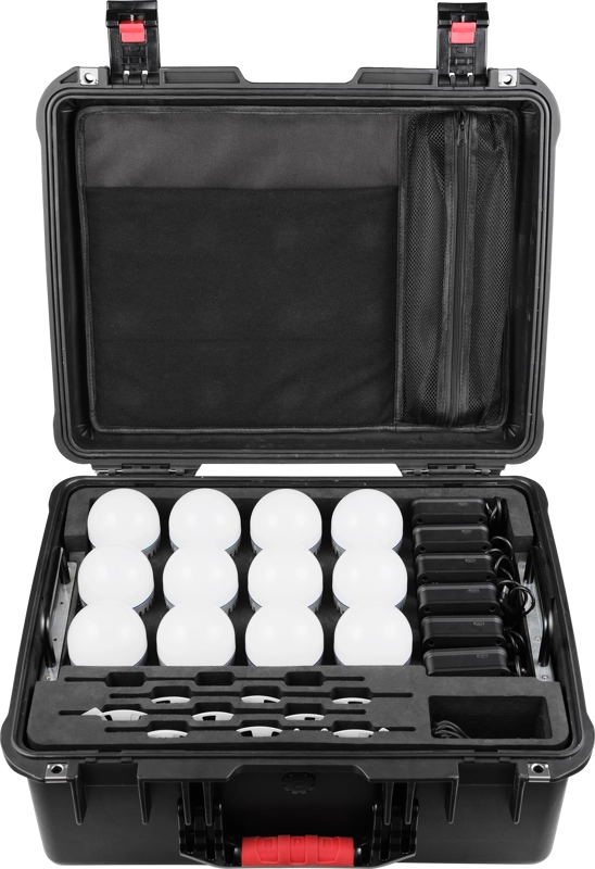 PavoBulb 10C dostępny jest również w kompletnych zestawach, takich jak 12KIT, które zostały opracowane z myślą o średnich i dużych produkcjach. Dzięki bogatemu zestawowi akcesoriów można łatwo rozbudować konfigurację i stworzyć spójne, profesjonalne sceny bez komplikacji.