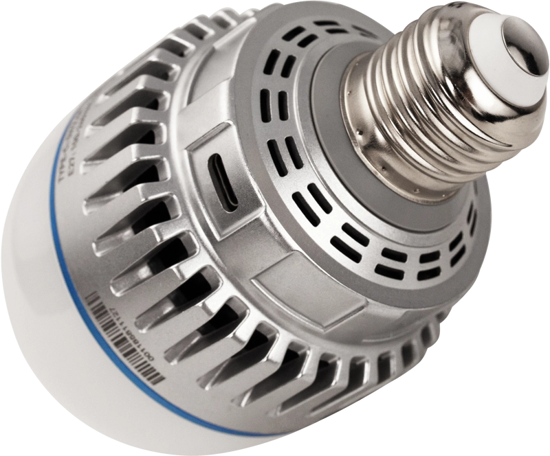 Żarówka oferuje wiele opcji zasilania, aby sprostać wymaganiom planu zdjęciowego. Może być podłączona do gniazda E27 (AC), zasilana przez port USB-C (DC), a także współpracować z adapterami magnetycznymi i akumulatorowymi kompatybilnymi z bateriami NPF. To gwarantuje stabilne i niezawodne działanie w każdych warunkach.