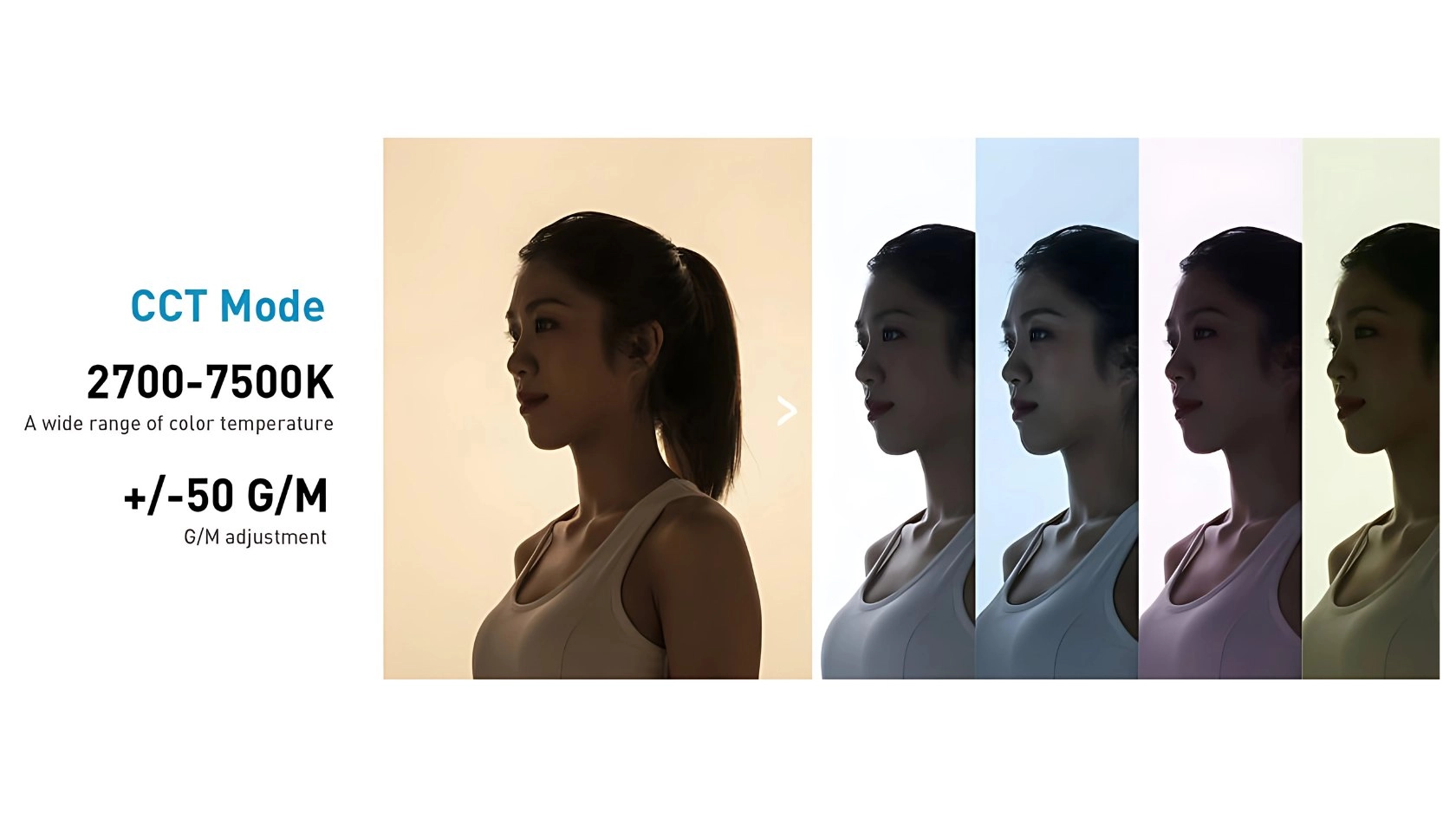 - Temperatura barwowa: 2700–7500 K (z regulacją zielony/magenta)