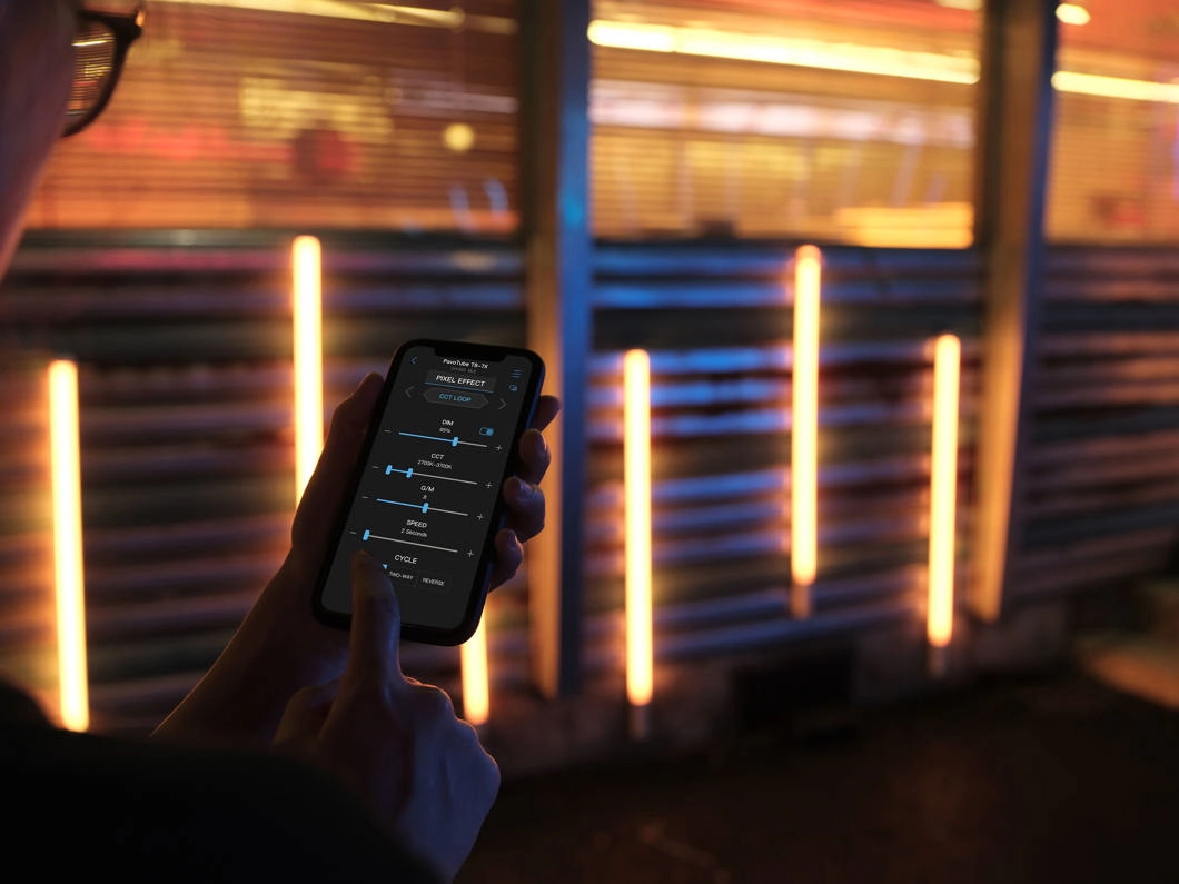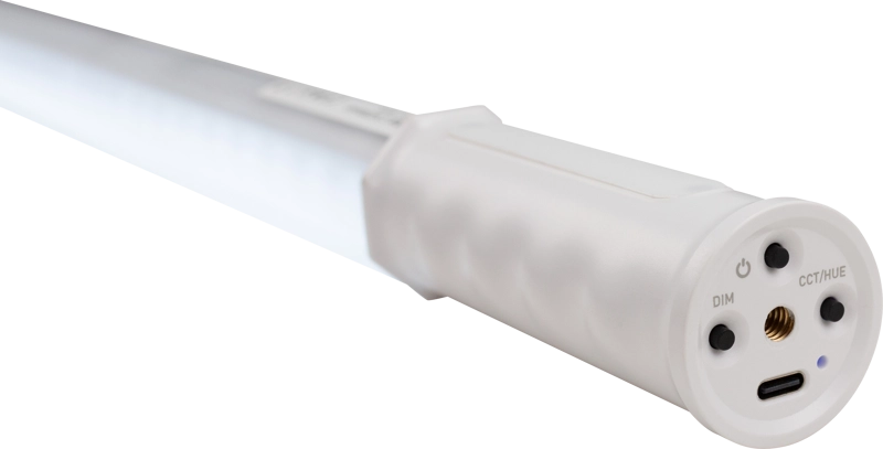 PavoTube T8-7X oferuje elastyczność dzięki różnym opcjom zasilania. Wbudowana, smukła bateria pozwala na pracę w plenerze bez użycia kabli, co jest idealne do spontanicznych sesji. Standardowy port USB-C umożliwia podłączenie zewnętrznego kontrolera Nanlite WC-USBC-C1, który dostarcza dodatkowe zasilanie z baterii zewnętrznej oraz rozszerza opcje sterowania. Lampa może być sterowana na kilka sposobów: poprzez wbudowane przyciski, przewodowo lub bezprzewodowo za pomocą aplikacji NANLINK oraz kontroli DMX/RDM.